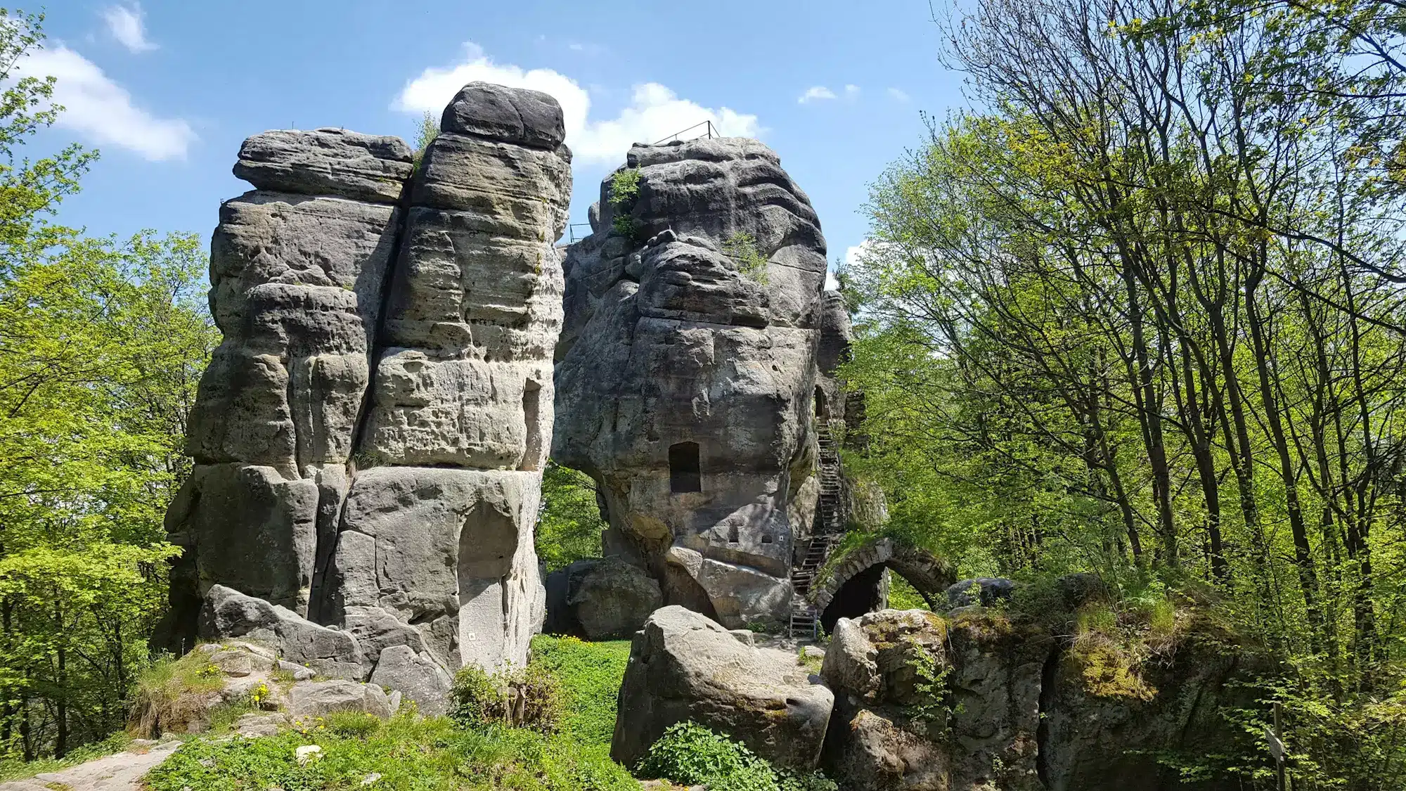 Pozůstatky hradu Skály objevíte nedaleko Teplic nad Metují. Hrad byl založen na konci 14. století, později byl pobořen a opět obnoven a využíván až do poloviny 16. století. Dnes zde uvidíte zbytkové části zdiva, které byly účelně vsazeno do okolních skal, zbytky studny a tesané místnosti do skal. -Nachází se zde i rozhledna Čáp, Černé jezírko - 40 km, 53 min