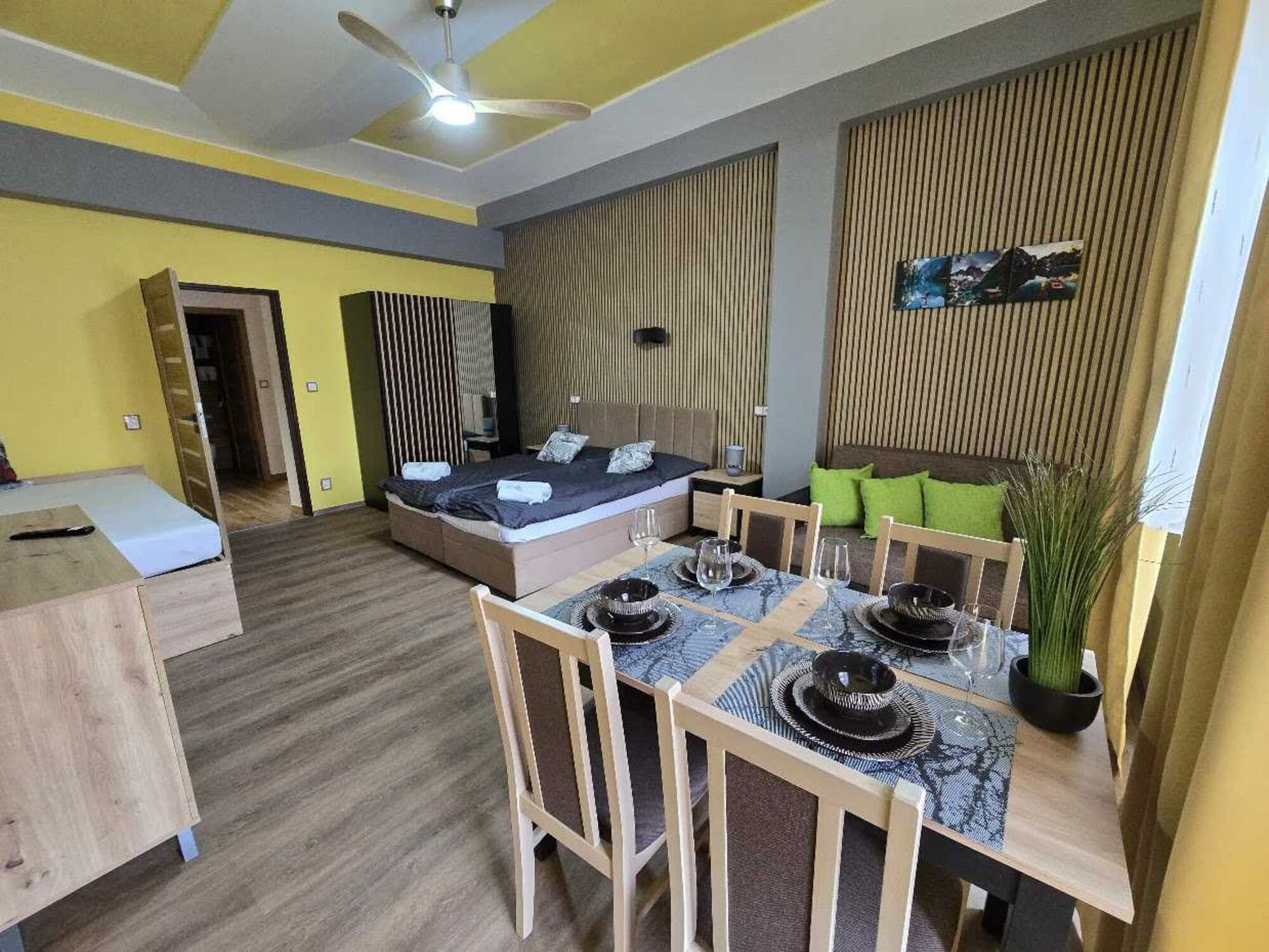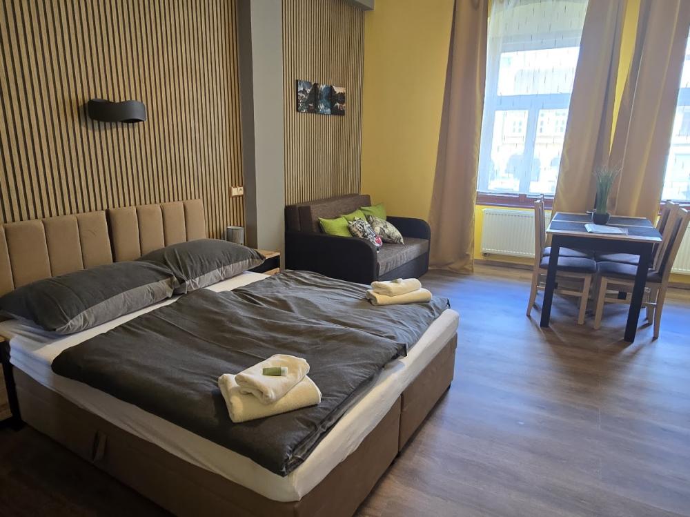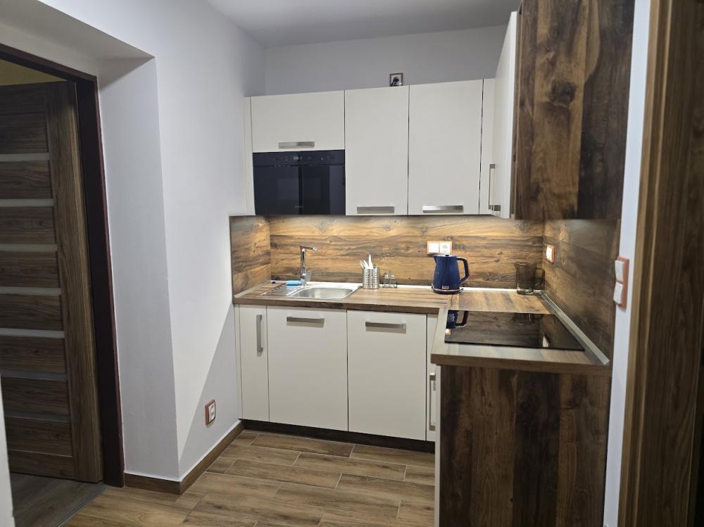 Apartmán je určený až pro 4 osoby. K dispozici je manželská postel, jednolůžko a přistýlka formou rozkládacího gauče. Součástí apartmánu je koupelna se sprchovým koutem a plně vybavená kuchyň (lednice, mikrovlnná trouba, varná deska, myčka, rychlovarná konvice, nádobí, utěrky apod.). Dále zde naleznete šatní skříň, jídelní stůl a televizi. WI-FI připojení je dostupné v celém objektu.